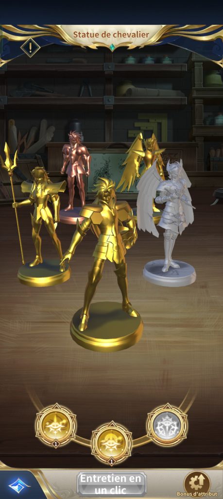 Dans « Saint Seiya Legend of Justice, » chaque statue, une fois montée à un certain niveau, débloque des compétences bonus.